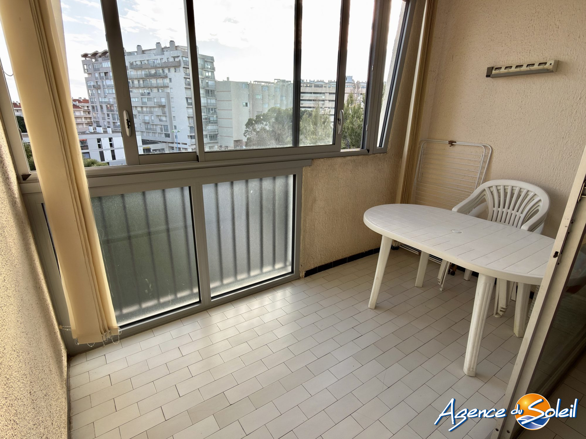 L’appartement se compose d’un hall d’entrée avec rangement, d’un séjour lumineux de 18 m² avec coin cuisine et climatisation réversible, prolongé par une loggia fermée de 6 m² exposée Est, offrant une vue dégagée avec aperçu mer.La partie nuit comprend une chambre de 7,5 m² avec placard intégré ainsi qu’une salle d’eau avec WC.
